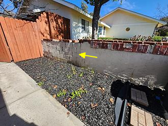 20) Needs Attention, Repair, Evaluate - A An ungrouted/unfinished retaining wall, also appearing to have No Rebar re-enforcement was observed. Ask the Seller regarding this condition recommended. Evaluate for Repair and or Finishing of the Wall is needed.