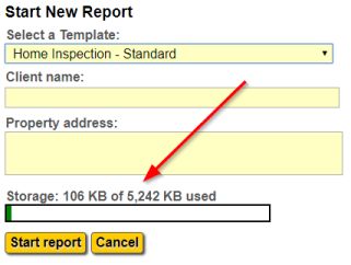 The start new report dialog showing the local storage indicator