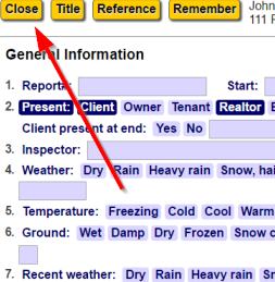 When you have a report open for editing, click the "Remember" button at the top of the page to open the Remember feature. Nothing you do here will affect your report. It simply lets you note that you've changed something in the house or building that your inspecting, so you don't forget to put things back to the way they were.