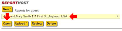 The "Open" button and list of reports