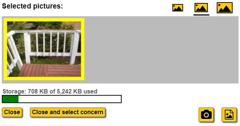 The select pictuers dialog with one picture taken for this concern